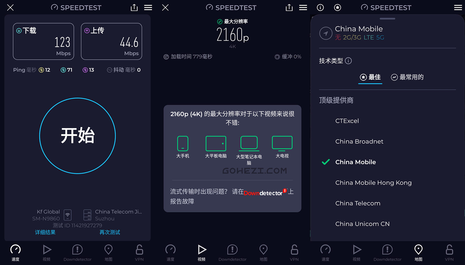 一键测速,看得懂的结果操作逻辑非常傻瓜:点击中间大大的“开始”按钮,只需 30 秒,它就会告诉你三个最关键的数据: