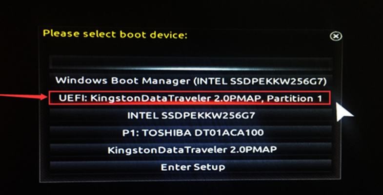 在弹出的启动项菜单(Boot Menu)中,找到带有“USB”字样或者你U盘品牌的选项,按下回车键(Enter)即可成功进入微PE系统。
